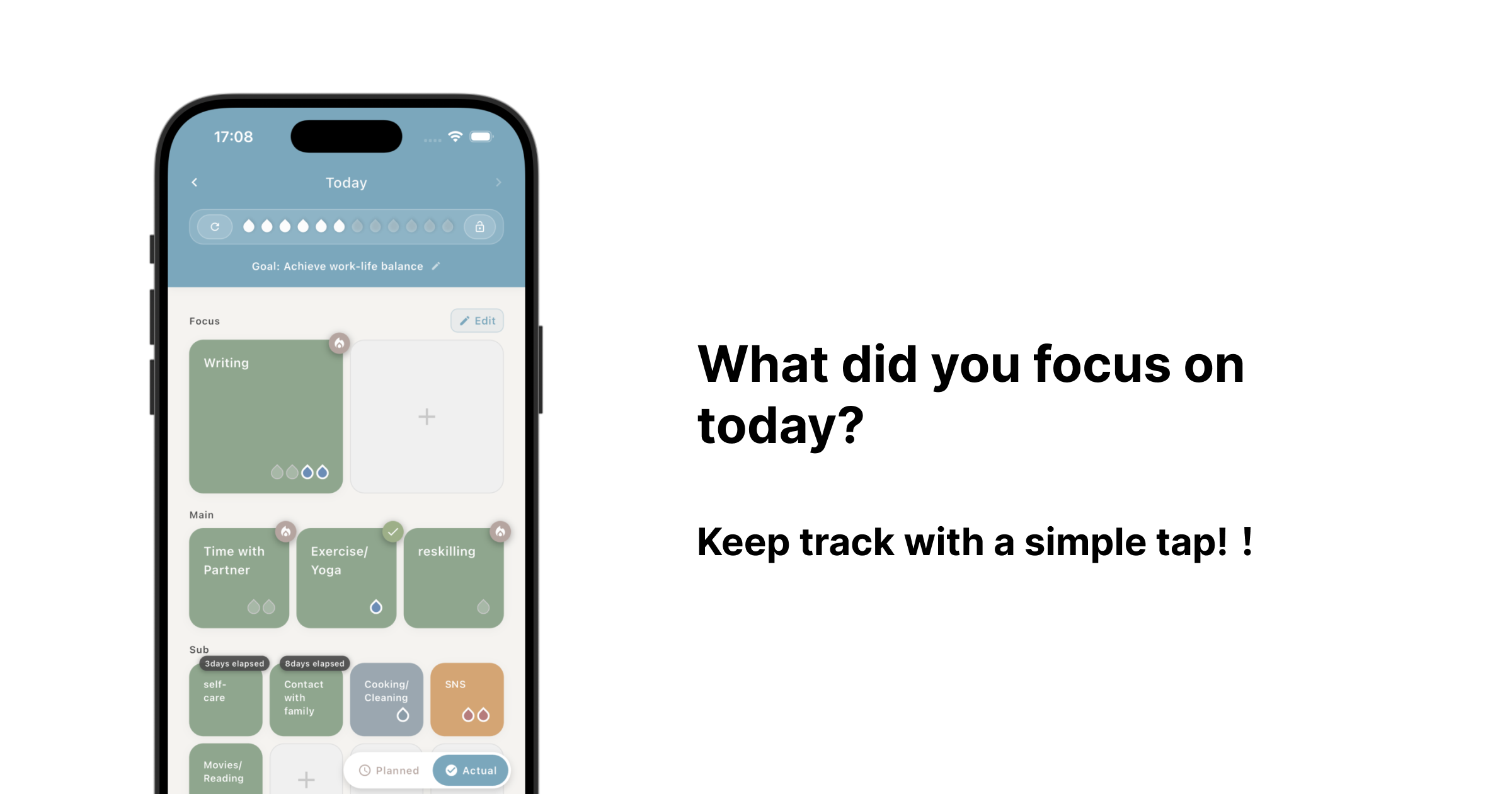 Tap tiles to place drops and record your activities.
